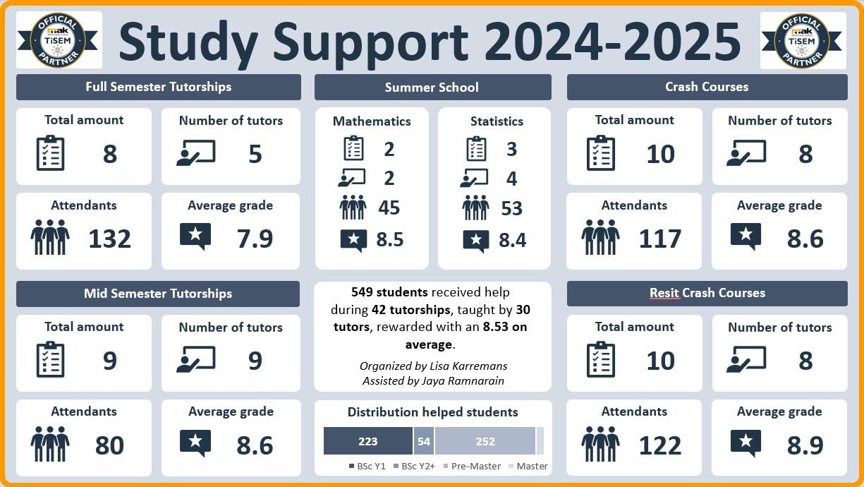 Every year, we evaluate the tutorships that have been given in that year. Down below you can see the results of the academic year 2024-2025.